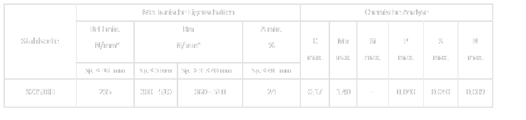 Stahlsorte: S235JRH – Eigenschaften wie in der Tabelle unten gezeigt *