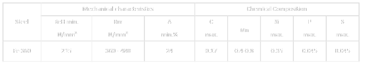 Steel: Fe 360 – characteristics as indicated in the table below *