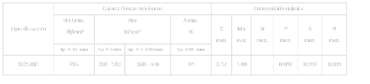 Tipo de acero: S235JRH – características como se muestra en la siguiente tabla *