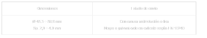Documentación: Certificado de conformidad EN 10204 2.2; Otros tipos de documentos bajo pedido